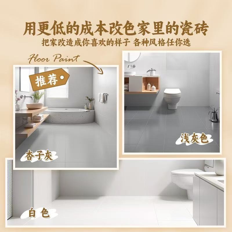2、注意要点:地面要耐磨防滑,浴室要防霉,厨房要耐高温!千万别用墙面漆,要用专业的爱普诗瓷砖改色漆!